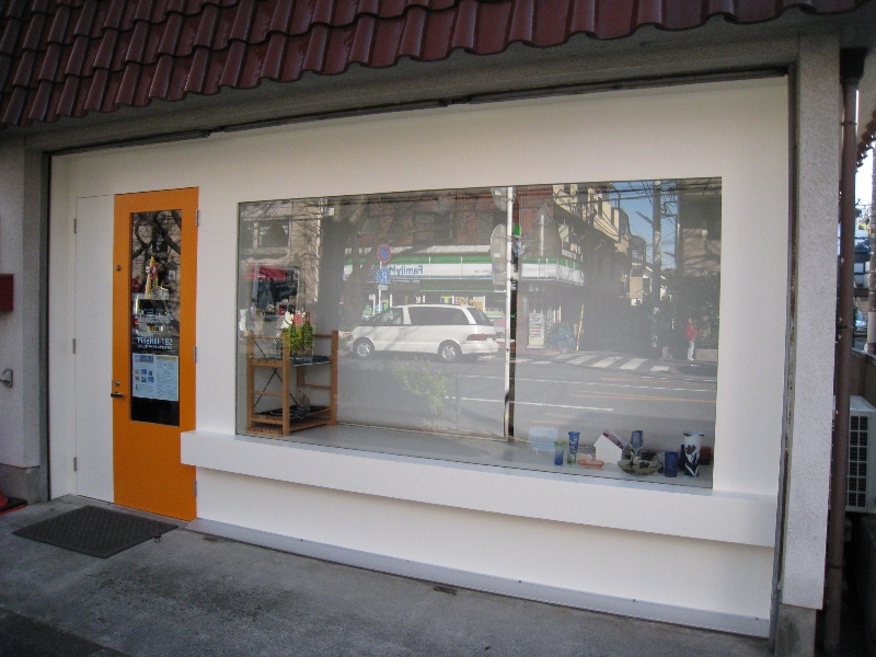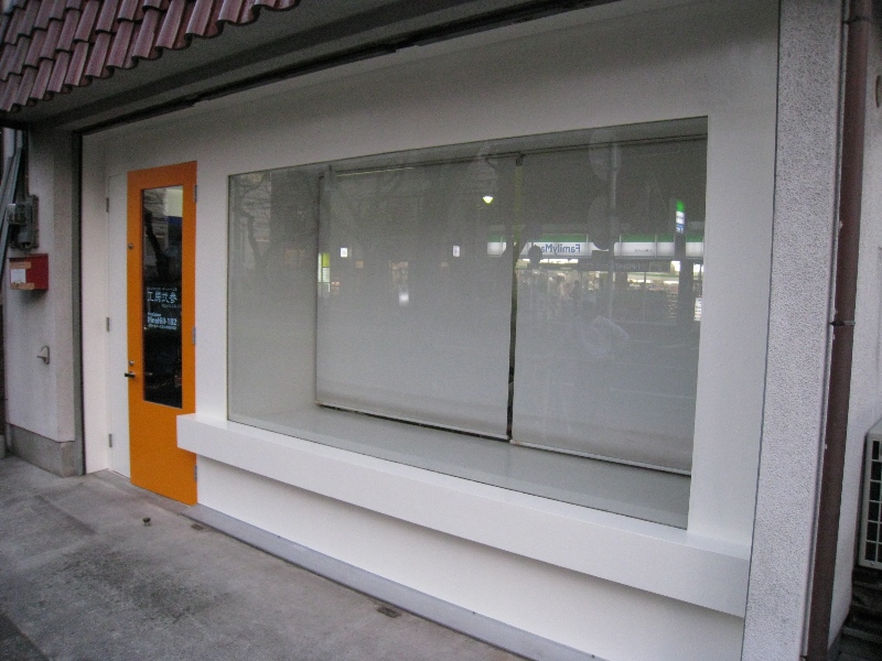 工房前を通る(中野通りを歩く)人が、ショーウィンドウを