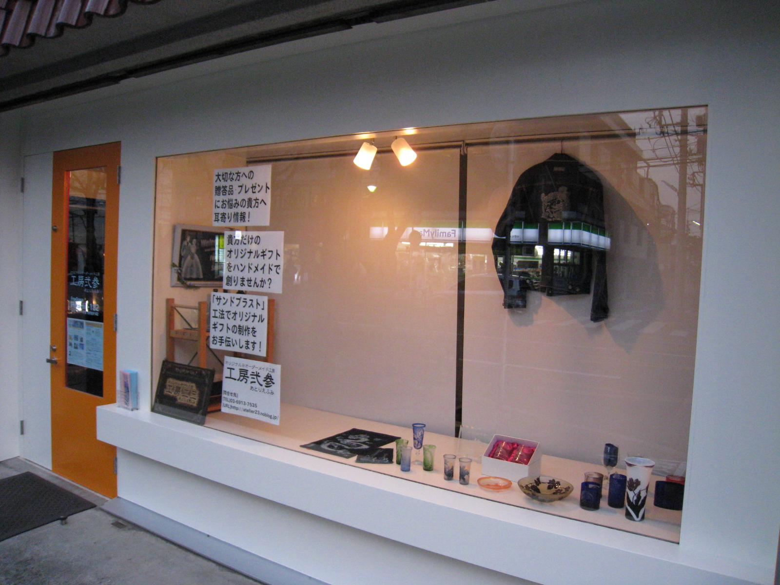ショーウィンドウ部にキャッチコピーの張り紙をして。