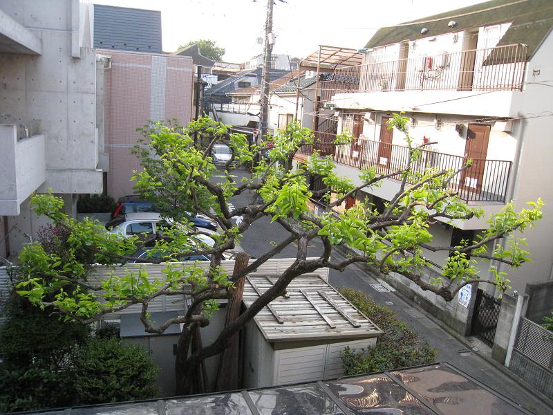 花びらと額も落ちきり、掃き掃除も終わってすっかり、新緑♪