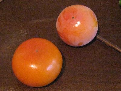 買ってきた柿とほぼ同じ♪(枝付きが我が家の柿)