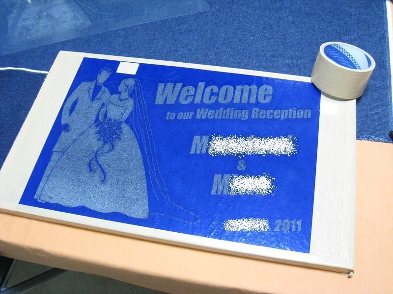 通常のガラスのように平滑ではないので慎重に貼り付け(押し付け)て![サンドブラスト制作中[デニム製ウエルカムボード]4養生](https://livedoor.blogimg.jp/atelier_23/imgs/2/f/2f4e7a50-s.jpg)