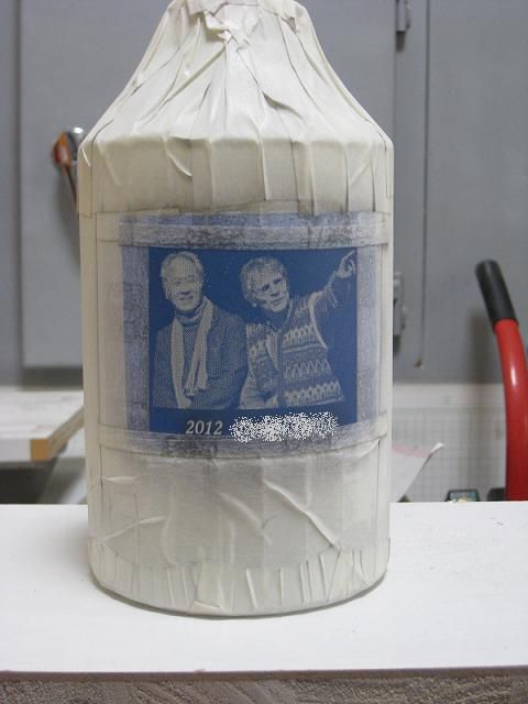 サンドブラスト作品 -ボトル(写真)マスク貼り-