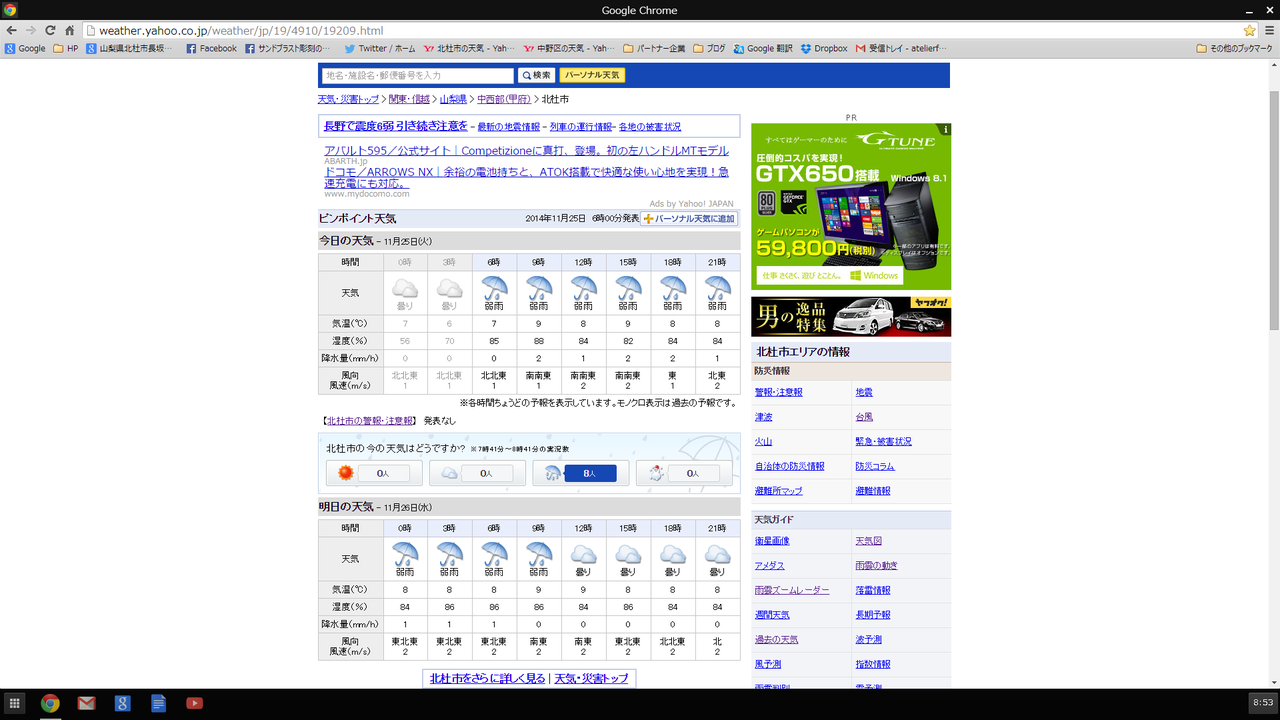 (甲府で最低気温がマイナス予測...ここ長坂は?>。<)
