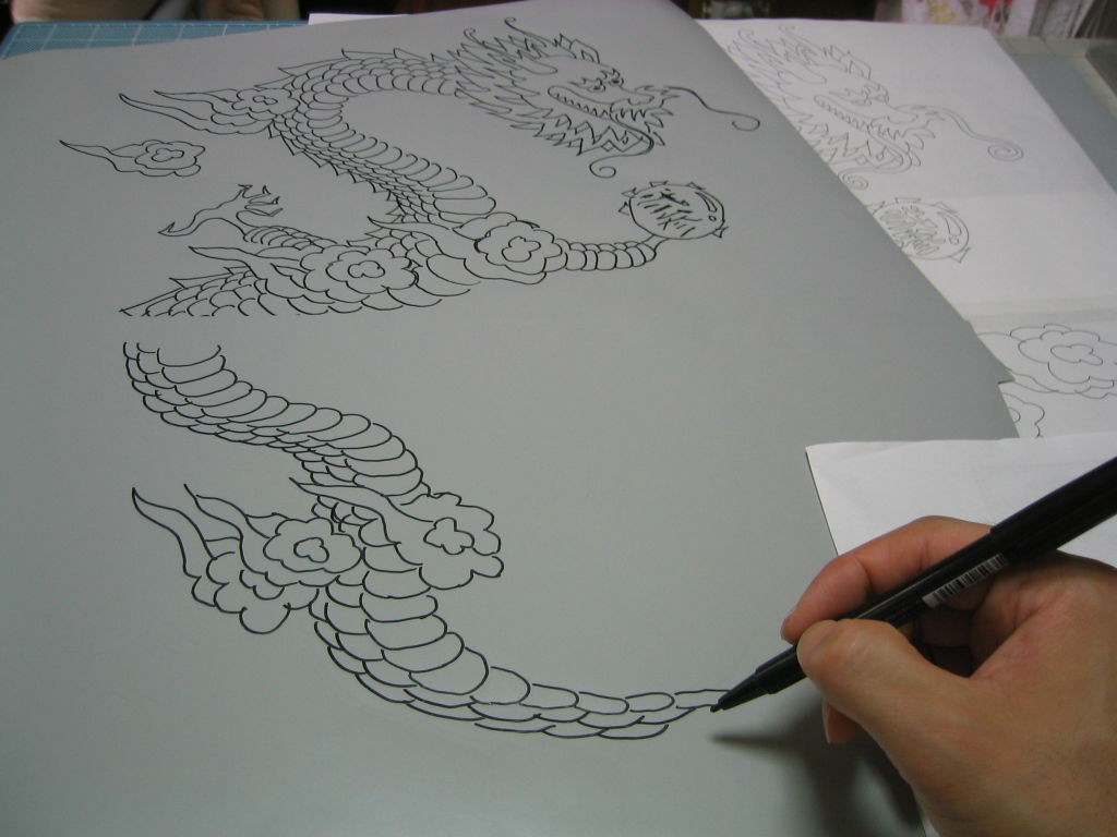 鱗の部分を一枚一枚、剥がしては彫り、剥がしては彫り...