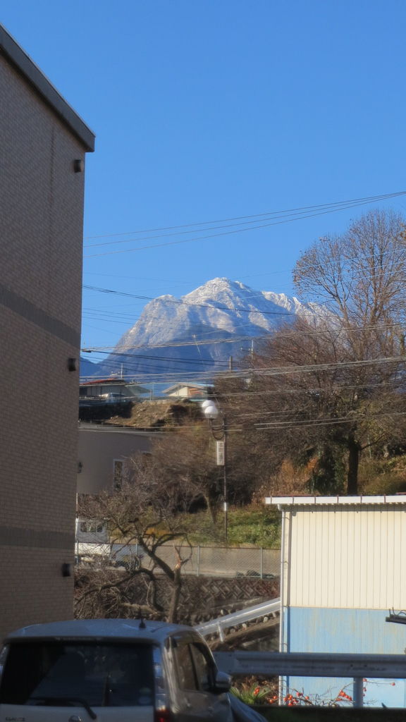 昨日の雨、お山では雪だったようで今朝は南アルプス・甲斐駒ヶ岳が