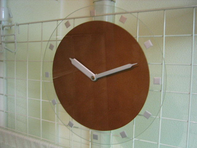 直径300mm(30cm)ほどで前回(『ミラー時計』)と同寸法なのですが、今回のは全体が『ガラス』になって