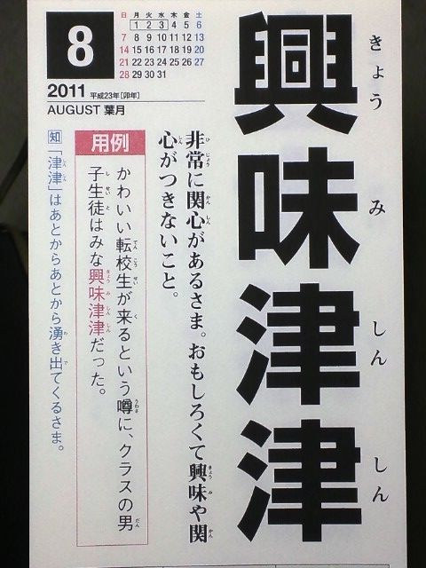 「興味津津」(面白くて興味や関心が尽きないこと)