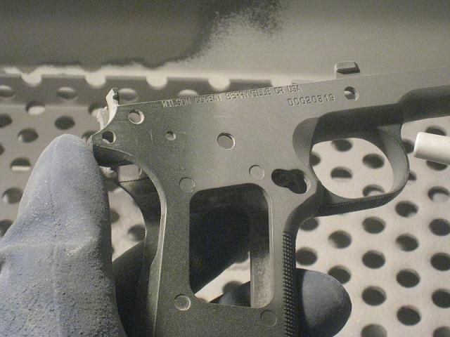 (↑写真はモデルガン[アルミ]の塗装剥し→メッキ前下地加工中)