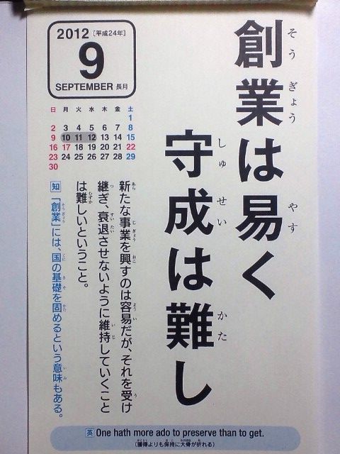 「創業は易く守成は難し」(英訳:獲得よりも保持に大骨がおれる)