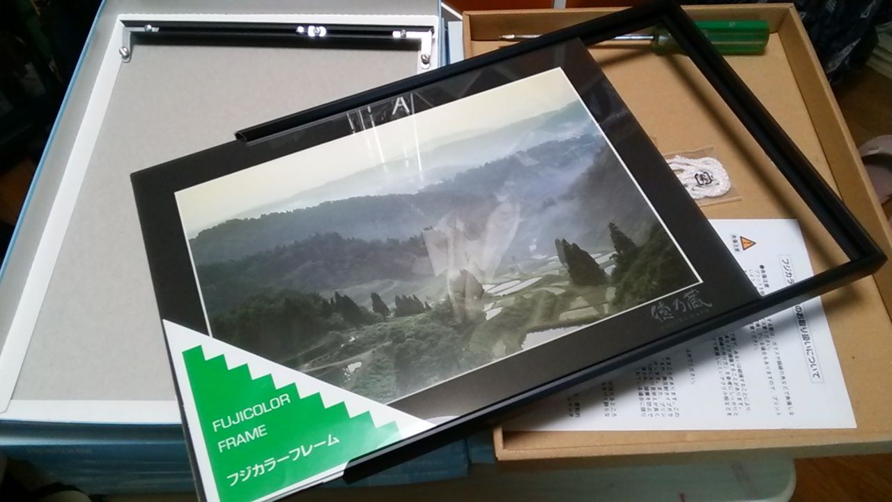 フィルムを剥がし、養生を剥がし、ガラスクリーナーで磨いたらフォトフレームに