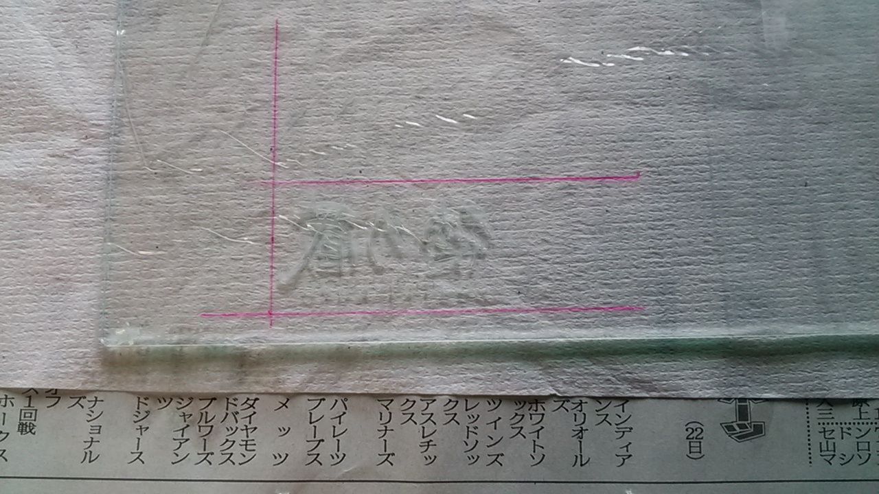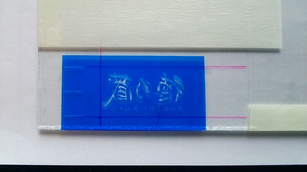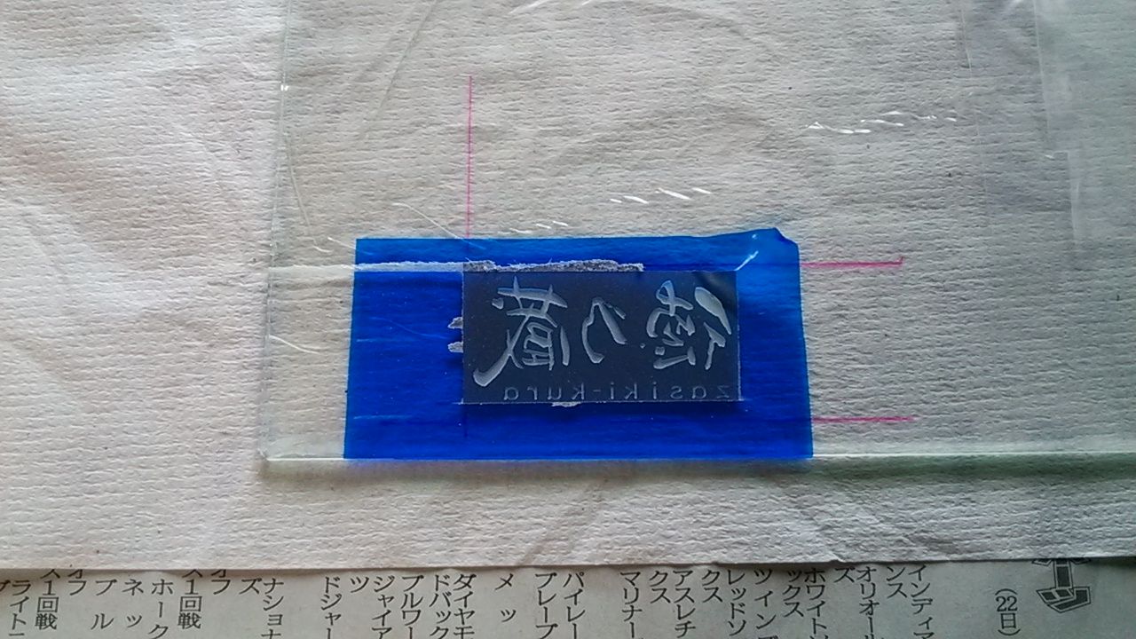 本来は正面下部は透明なのですが、裏面にサンドブラストすると透けて