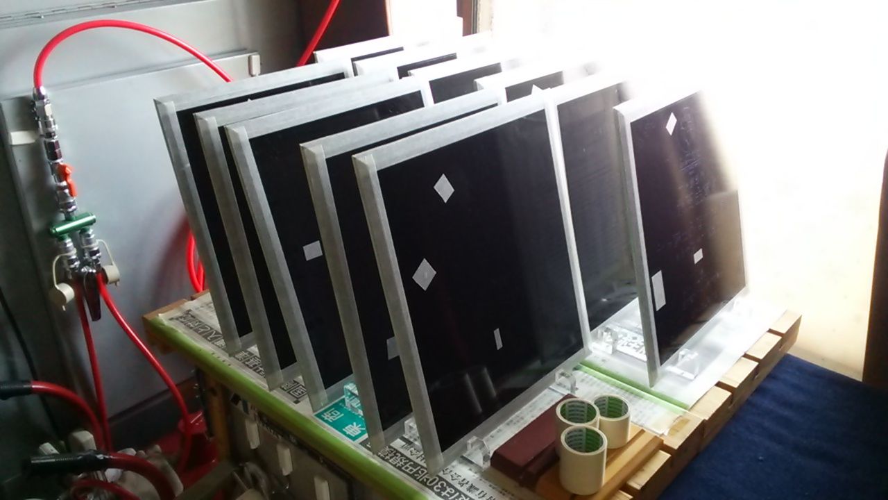 1_2 糊塗布後、フイルム(青オーディル)貼り付け