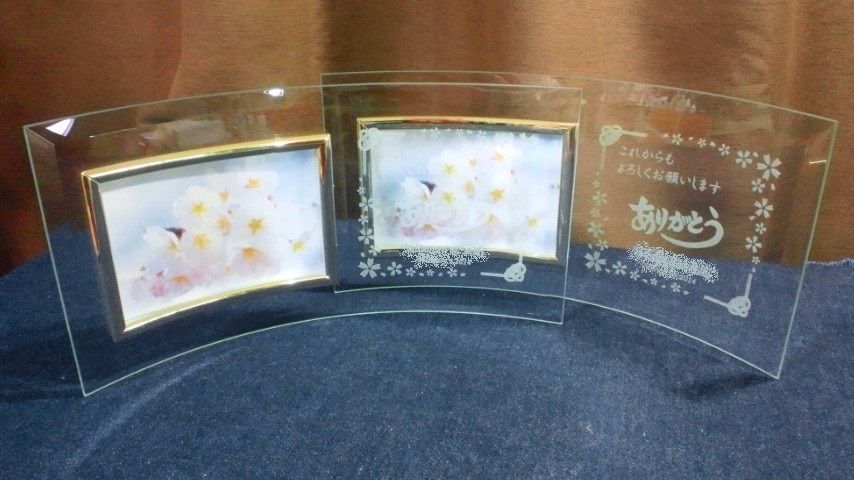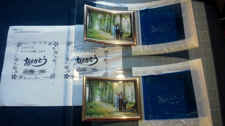 サンドブラスト「作業中」 ガラス置物用ミラー台(名入れ)